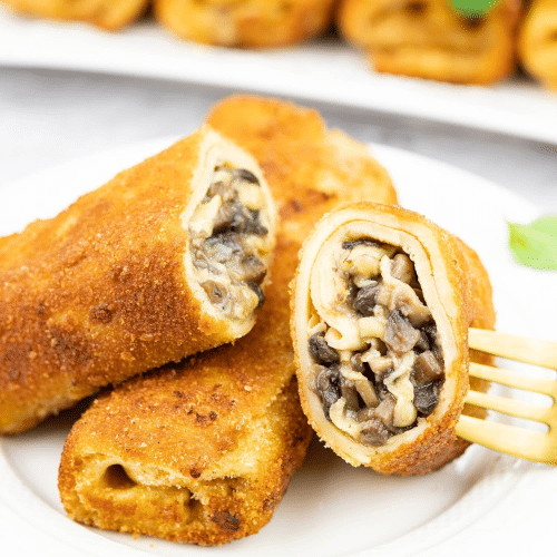 czeburek z pieczarkami polany sosem czosnkowo-jogurtowym